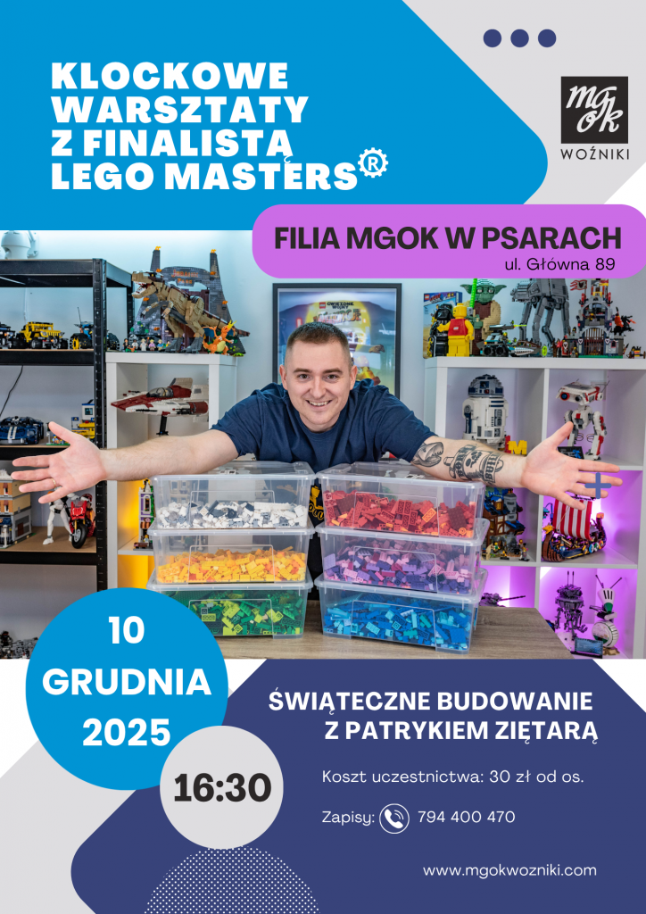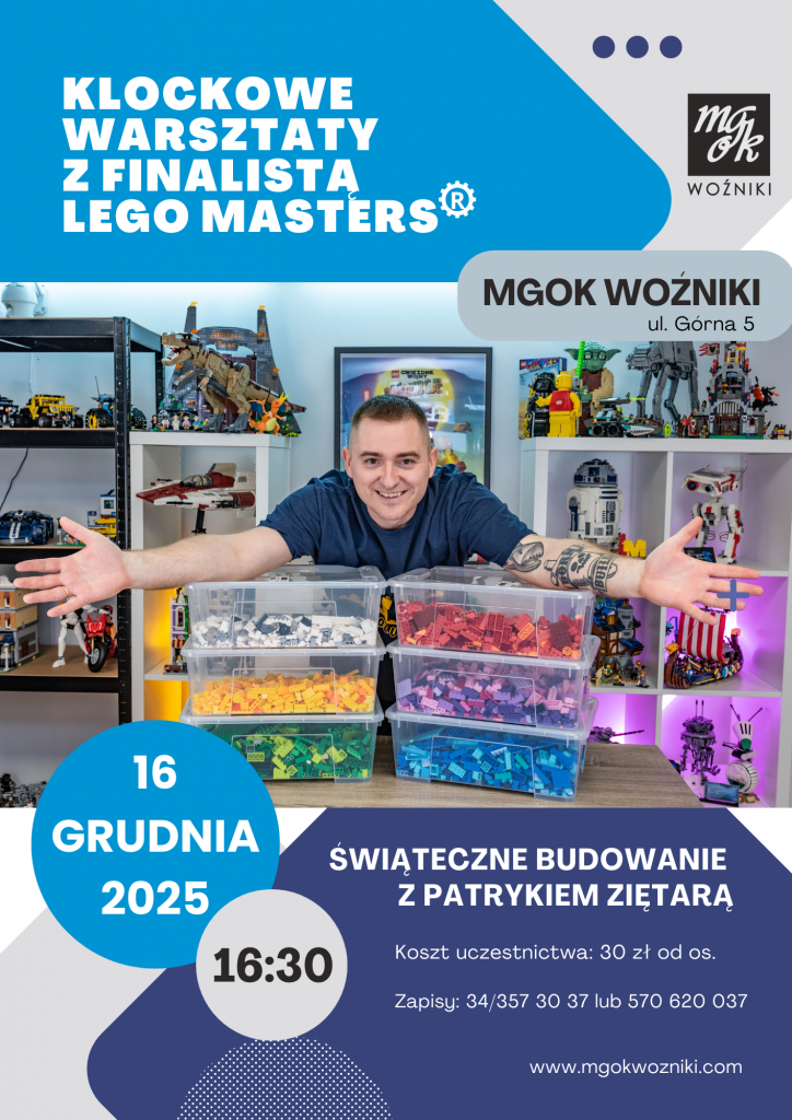 26 listopada 2025 o godz. 18:00 zapraszamy do Miejsko-Gminnego Ośrodka Kultury w Woźnikach na warsztaty tworzenia wieńców adwentowych. Koszt uczestnictwa: 50 zł od os. Obowiązują zapisy. […]