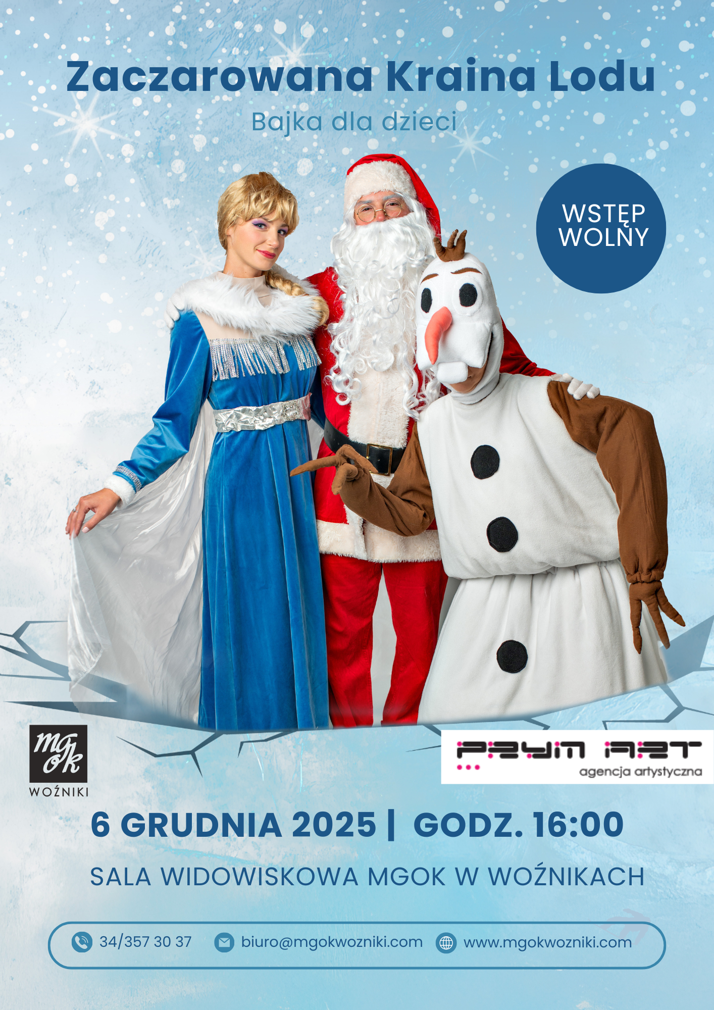 Mikołajkowy program interaktywny “Zaczarowana Kraina Lodu” agencji artystycznej PRYM ART z udziałem kultowych postaci Elsy, Bałwana Olafa oraz samego Świętego Mikołaja to wyjątkowe wydarzenie, które wprowadzi całe rodziny w świąteczny klimat.